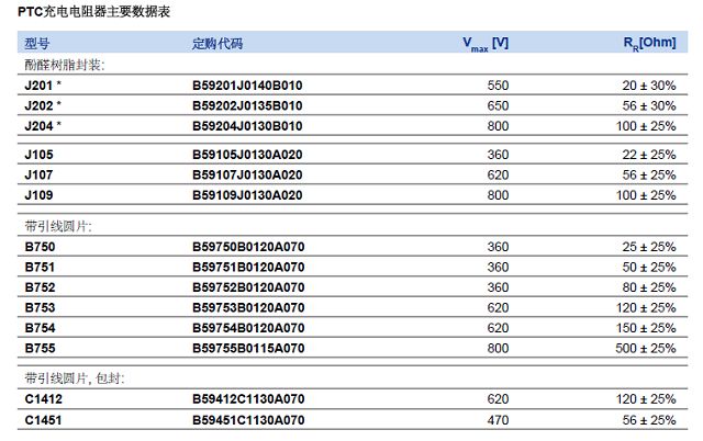 TDK-EPC常用的ICL PTC的規格型號如下表: