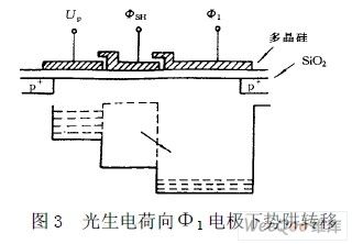 (1)工作原理。 TCD1206UD 在圖2 所示的驅(qū)動(dòng)脈沖作用下工作。當(dāng)ΦSH 脈沖的高電平到來(lái)時(shí),正值Φ1 電極下均形成深勢(shì)阱,同時(shí)ΦSH 的高電平使Φ1 電極下的深勢(shì)阱與MOS 電容存儲(chǔ)勢(shì)阱溝通。