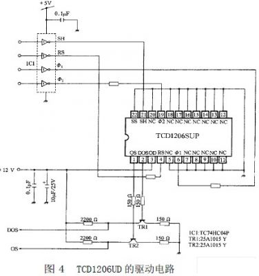 在1MHz 數(shù)據(jù)率情況下工作時(shí),有效像元輸出時(shí)間為2.16ms,鋼絲繩直徑信號(hào)產(chǎn)生于2.16ms 期間。輸出信號(hào)的暗電平可控制在1.0V 左右。而高電平可接近10V,相差比較大。當(dāng)光學(xué)系統(tǒng)調(diào)整得比較好時(shí),圖像邊緣的信號(hào)比較陡,測(cè)量誤差較小。TCD1206UD 的工作原理和驅(qū)動(dòng)電路如下: