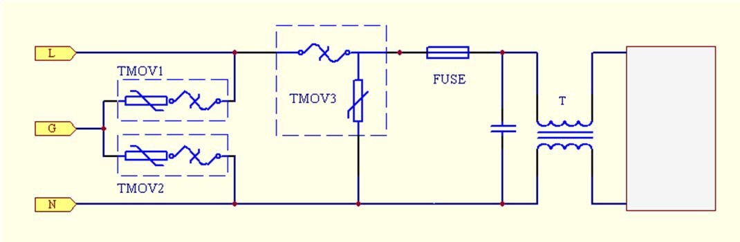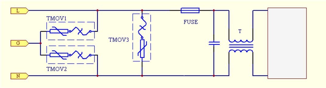 家用電器都是以單相供電的,現狀中大都只在相線與中性線之間接一只壓敏電阻器作為過電壓保護元件,這種保護模式稱之為橫向保護、也稱為差模保護模式。僅有差模保護是不夠的。