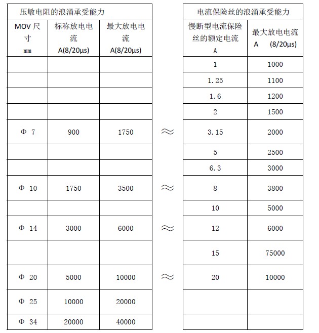 3.1 壓敏電阻MOV 與電流保險絲FUSE 的浪涌電流承受能力對比