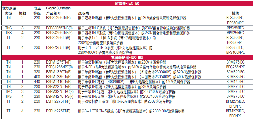 • Cooper Bussmann用于所有IEC應用的高性能防雷和浪涌保護產品