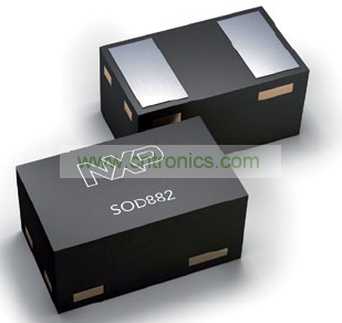 NXP Semiconductors PESD5V0X1BCAL雙向 ESD 保護二極管集超低電容、低鉗位電壓、微型 DFN1006-2 (SOD882)塑料表面安裝封裝和超低泄漏電流的優點于一身,適用于從便攜式設備到通信系統和汽車電子設備的多種應用。