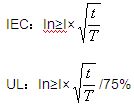 如果保險絲通以一定的電流(Ix)可以永久工作,那么此時保險絲的聚熱與散熱一定處于平衡狀態(tài),此時保險絲的散熱功率為Ix2T。如果尖峰電流產(chǎn)生的能量≤Ix2T,可以認為尖峰電流產(chǎn)生的能量不可能使保險絲的溫升大于Ix時的溫升。對于滿足不同的安規(guī)體系,Ix的數(shù)值有所區(qū)別,IEC體系下可以認為等于In;UL體系下可以認為等于75%In。
