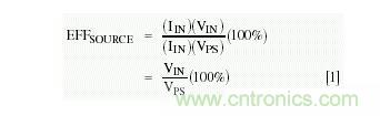 計算和測量電源效率非常簡單。EFFSOURCE = (送入調(diào)節(jié)器的功率)/(VPS輸出功率) x 100%: