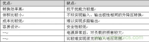 結合常用的隔離與非隔離電源,我們從直觀上就可得出它們的一些優(yōu)缺點,如表1和表2所示,兩者的優(yōu)缺點幾乎是相反的。