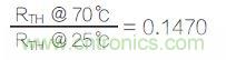 假設在25℃或室溫下,RTH為10,000Ω,那么,在70℃下,RTH為1,470Ω。