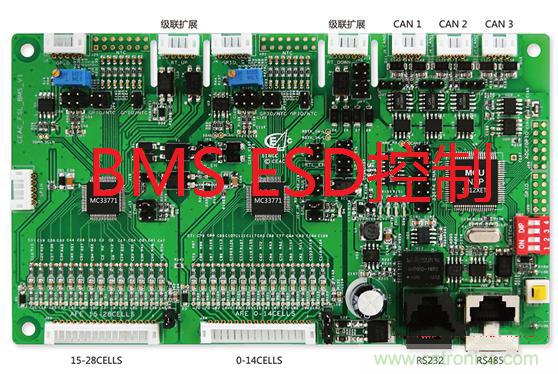 【導讀】典型的BMS控制板,基于NXP核心汽車級器件。作為板級ESD控制的主要部位為3路的CAN通信和對外通信接口,此方案內置了高可靠性的ESD防護,支持熱插拔和隨機的電池連接防護。