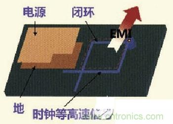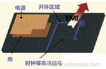 時(shí)鐘信號(hào)等高速信號(hào)網(wǎng)絡(luò),在多層的PCB走線的時(shí)候一旦產(chǎn)生了開(kāi)環(huán)的結(jié)果,將產(chǎn)生線形天線,增加EMI的輻射強(qiáng)度。