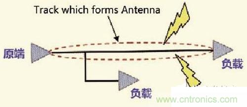 規(guī)則二提到高速信號(hào)的閉環(huán)會(huì)造成EMI輻射,然而開(kāi)環(huán)同樣會(huì)造成EMI輻射。