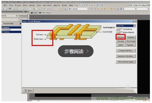 可以看到目前只有兩個層Top Layer 和 Bottom Layer。可以看見右側(cè)有Add Layer選項。