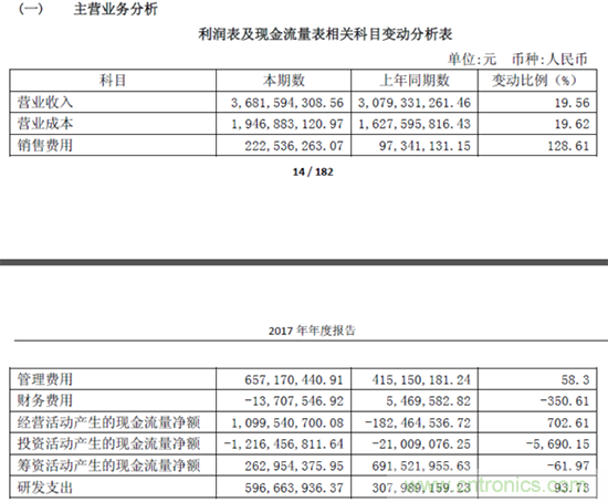 匯頂科技近日還發布了2017年年度報告以及2018年第一季度報告,報告顯示,公司2017年實現銷售收入約36.82億元,同比增長19.56%;歸屬于上市公司股東的凈利潤為8.87億元,同比增長3.52%。