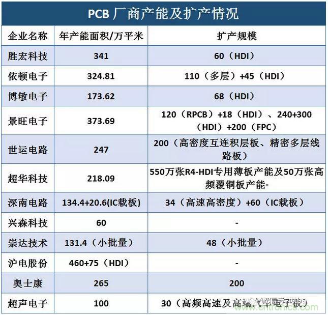 博敏電子:成立于2005年,已逐步形成以HDI板產(chǎn)品為核心,涵蓋多層板、單/雙面板、撓性電路板、剛撓結(jié)合板和其他多元化產(chǎn)品結(jié)構(gòu),主要客戶包括百富計算機(jī)、沃特沃德、三星電子等。HDI為主要營收來源,2017年?duì)I收占比超50%。