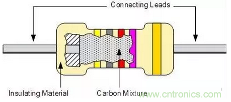 碳合成電阻主要是由碳粉末和粘合劑一起燒結成圓柱型的電阻體,其中碳粉末的濃度決定了電阻值的大小,在兩端加鍍錫銅引線,最后封裝成型。碳合成電阻工藝簡單,原材料也容易獲得,所以價格最便宜。但是碳合成電阻的性能不太好,容差比較大(也就是做不了精密電阻),溫度特性不好,通常噪聲比較大。碳合成電阻耐壓性能較好,由于內部是可以看作是碳棒,基本不會被擊穿導致被燒毀。