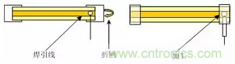 ①內銅箔一般加工方法:焊接引線→銅箔兩端平貼于醋酸布中央→折回醋酸布(醋酸布須完全覆蓋住焊點)→剪斷醋酸布(銅箔兩邊須留1mm以上),如圖8所示。