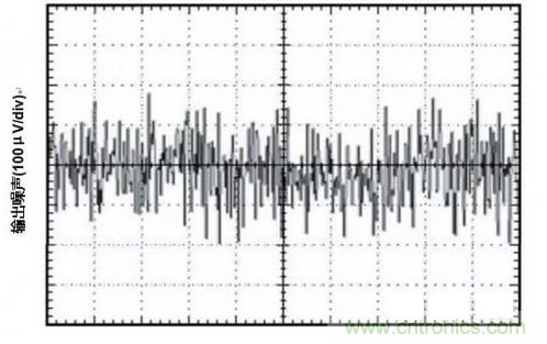 理想的LDO具備沒有交流元件的電壓軌。但缺點在于LDO會和其他電子設備一樣生成本體噪聲。圖 1 顯示了這種噪聲在時間域中的表現。