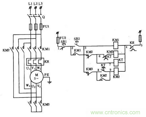 1- 電動機Y/△減壓起動控制主電路和電氣控制的原理圖