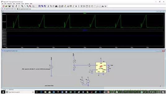 圖5: LTC1966仿真,用于測量開關模式電源的開關FET電流波形的RMS值。(圖片來源:Digi-Key Electronics)