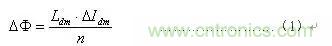 式中,是芯體中的磁通變化量,Ldm是測得的差模電感,是差模峰值電流,n為共模線圈的匝數。