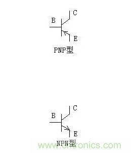 一般,管型是NPN還是PNP應從管殼上標注的型號來辨別。依照部頒標準,三極管型號的第二位(字母),A、C表示PNP管,B、D表示NPN管,例如: