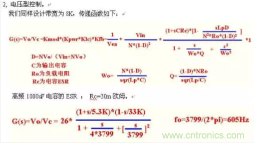 下面分電壓型和峰值電流型控制來設(shè)計此電源環(huán)路.所有設(shè)計取樣點在輸出小LC前面.如果取樣點在小LC后面,由于受LC諧振頻率限制,帶寬不能很高.1)電流型控制