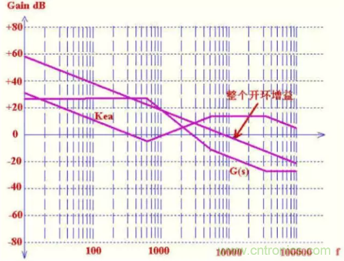 同樣假設(shè)光耦CTR=1,如果用CTR大的光耦,或加有其他放大時,如同時用IC的內(nèi)部運放,只需要在波得圖上加一個直流增益后,再設(shè)計補償部分即可.這時要求把IC內(nèi)部運放配置為比例放大器,如果再在內(nèi)部運放加補償,就稍微麻煩一點,在圖上再加一條補償線結(jié)束.