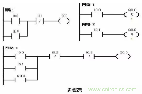 多輸出自鎖控制即多個負(fù)載自鎖輸出,有多種編程方法,可用置位、復(fù)位指令