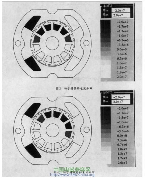 圖3及圖4分別表示了轉子在借偏前后的電流分布: