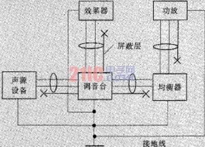 在音頻系統(tǒng)中,必須要求整個(gè)系統(tǒng)有良好的接地,接地電阻要4歐姆。否則音頻系統(tǒng)中設(shè)備由于各種輻射和電磁感應(yīng)產(chǎn)生的感應(yīng)電荷將不能夠流入大地,從而形成噪聲電壓疊加到音頻信號(hào)中。