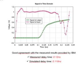 除了CST印制板工作室,CST微波工作室也可以進行印制板的信號完整性分析。CST微波工作室是通用的高頻無源仿真軟件,集時域和頻域算法為一體包含七種全波算法:時域有限積分、頻域有限積分、頻域有限元、模式降階法、矩量法、多層快速多極子和本征模法。圖5給出了CST仿真IBM復雜PCB并進行信號完整性分析的考題,仿真得到的電壓延時與實測只差0.002ns。[page]