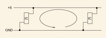 電流通過感應進入到電路環路,這些環路是封閉的,并具有變化的磁通量。電流的幅度與環的面積成正比。較大的環路包含有較多的磁通量,因而在電路中感應出較強的電流。因此,必須減少環路面積。