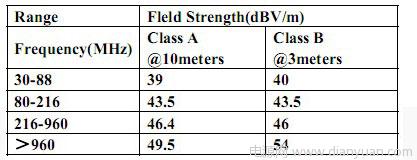 EMI測(cè)試是在特定的電波暗室中進(jìn)行的,測(cè)量由產(chǎn)品中輻射出來的電磁波強(qiáng)度,與FCC等規(guī)范相比較,不得超過規(guī)定的最大能量。FCC規(guī)范中將產(chǎn)品按用途分為CLASS A 、CLASS B 兩大類,A 類為用于商務(wù)或工業(yè)用途的產(chǎn)品,B 類為用于家庭用途的產(chǎn)品, FCC 對(duì) B 類產(chǎn)品法規(guī)要求更嚴(yán)格。下表顯示的是FCC 規(guī)范的CLASS A和CLASS B標(biāo)準(zhǔn):