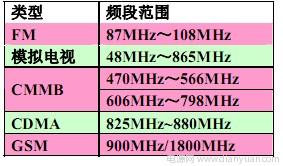 EMI主要通過PCB的走線、通孔和揚(yáng)聲器的連線向外輻射,較大能量的EMI輻射需要一個(gè)“高效率”的天線,對(duì)不同的頻率,一個(gè)有效的天線長(zhǎng)度是該頻率波長(zhǎng)的四分之一(λ/4),小于這個(gè)長(zhǎng)度,就不能形成有效的對(duì)外輻射。對(duì)30MHz的頻率,采用一般的FR4的PCB板,天線長(zhǎng)度需要大于114.1cm才能形成有效的輻射。所以在手機(jī)上采用D類放大器時(shí),在放大器輸出的PCB走線和揚(yáng)聲器連線上的方波邊沿變化是EMI的最重要來源。特別是手機(jī)應(yīng)用中所關(guān)心的一些頻段,如下表所示:基本都在100MHz以上,因此我們需要特別地關(guān)注由方波邊沿變化所引起的EMI輻射。