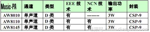 高效率、低功耗使得D類放大器的應(yīng)用越來越廣泛,D類放大器EMI也越來越受到關(guān)注。采用艾為帶有EEE技術(shù)的AW8010、AW8110、AW8145,極大地降低了EMI的輻射,簡(jiǎn)化了設(shè)計(jì)。其中音樂功放AW8110、AW8145同時(shí)還采用了獨(dú)特的、擁有專利保護(hù)的無破音(NCN:Non-Crack-Noise)技術(shù),提高音質(zhì)的同時(shí)有效地保護(hù)揚(yáng)聲器,是音樂手機(jī)等便攜式設(shè)備的理想選擇。