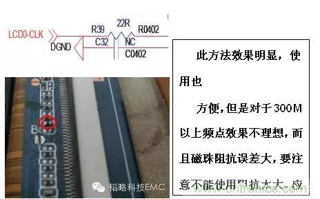 方法1:在屏時鐘上增加濾波電路,一般用RC濾波或加磁珠