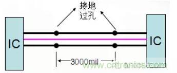 3、時鐘兩側建議包地線,包地線每隔3000mil接地,這樣保證包地線上各點電位相等。