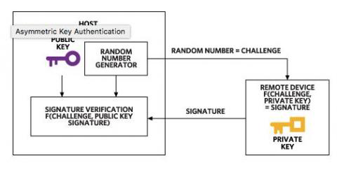 圖1. 基于對稱加密的安全認證依賴于主機和設備之間的共享密鑰。