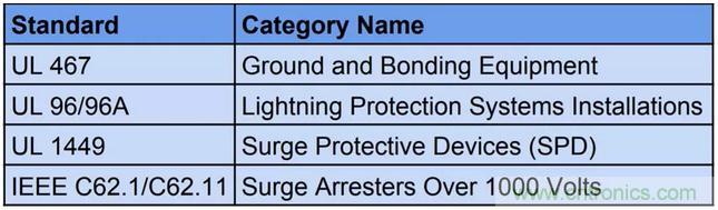 美國保險商實驗室(Underwriter’s Laboratory)所列的數(shù)種避雷防護標準主要針對浪涌保護中采用的設(shè)備(見表2)。其中,浪涌保護器件標準UL1449規(guī)定了瞬態(tài)電壓電氣路徑在各種系統(tǒng)供電方式下所需采取的保護模式。