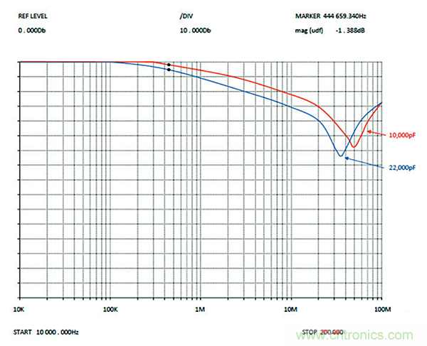 圖8:圖6中具有10000pF電容濾波的系統(tǒng)。