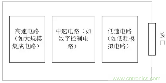 地環路在高速電路設計中不必要太多關心,因為這時很難去掉地環路,需要考慮的是如何降低地線的阻抗,因此數字電路常采用多點接地。但對低頻模擬電路及小信號電路,地環路問題又是比較重要的,必須減少地環路面積,抑制地環路對低頻模擬電路及小信號電路的騷擾。