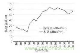 所以,當(dāng)電波暗室使用木桌或其他較大介電常數(shù)材質(zhì)制作的試驗桌等輔助設(shè)施時,會使場地衰減AN 增大而導(dǎo)致接收機(jī)測得的電場強(qiáng)度減小,使測試結(jié)果造成差異。試驗桌等輔助設(shè)備是試驗場地有效性中不可分割的一部分,因此建議,在選擇暗室輔助設(shè)施時選擇介電常數(shù)小的材質(zhì),并進(jìn)行場地衰減的測量比較,以保障各暗室測量結(jié)果的一致性。