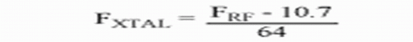 晶體頻率可以根據接收頻率指定。由于MAX1470使用低端注入的10.7MHz中頻,晶體頻率可由下式給出(單位為MHz):