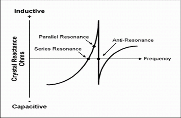 晶體具有兩種諧振模式:串聯(兩個頻率中的低頻率)和并聯(反諧振,兩個頻率中的高頻率)。所有在振蕩電路中呈現純阻性時的晶體都表現出兩種諧振模式。在串聯諧振模式中,動態電容的容抗Cm、感抗Lm相等且極性相反,阻抗最小。在反諧振點。阻抗卻是最大的,電流是最小的。在振蕩器應用中不使用反諧振點。