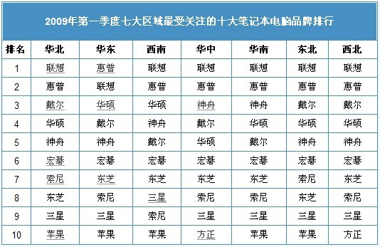 (圖) 2009年第一季度中國市場最受關注的15大筆記本電腦品牌分布