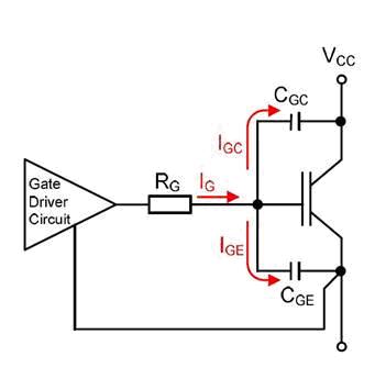 IGBT的開關(guān)時間受IGBT柵極的充放電控制。如果柵極峰值電流增大,則導(dǎo)通和關(guān)斷時間將變短,且開關(guān)損耗減少。