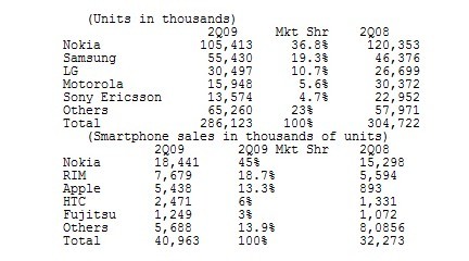 Gartner指出,諾基亞高端N97手機遇冷。自6月份上市銷售以來,N97銷量僅為50萬部,而3G S版iPhone上市銷售第一個周末銷量就達到100萬部。
