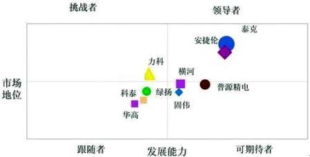 圖2:中國(guó)示波器市場(chǎng)現(xiàn)有廠商的競(jìng)爭(zhēng)格局。(參考:CCID調(diào)研報(bào)告,2008年3月)