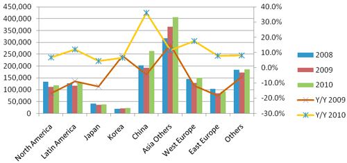 - 估計2010年的手機總出貨量將較為成長,預估將會有約15%的年成長率