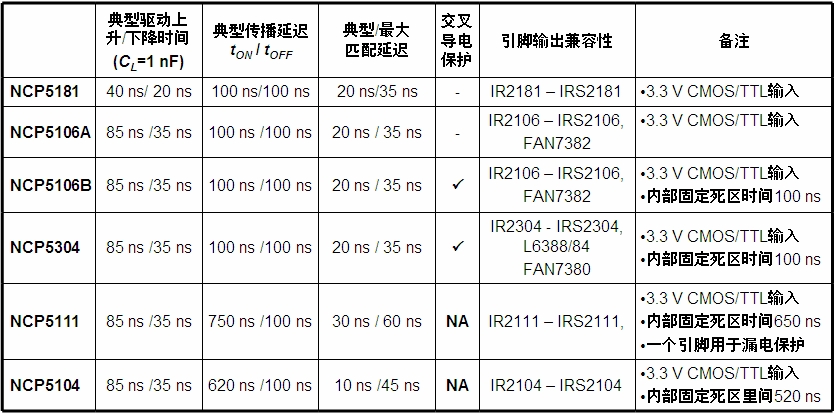 表1:安森美半導(dǎo)體用于高端MOSFET驅(qū)動(dòng)的硅驅(qū)動(dòng)器相互參照。