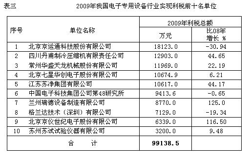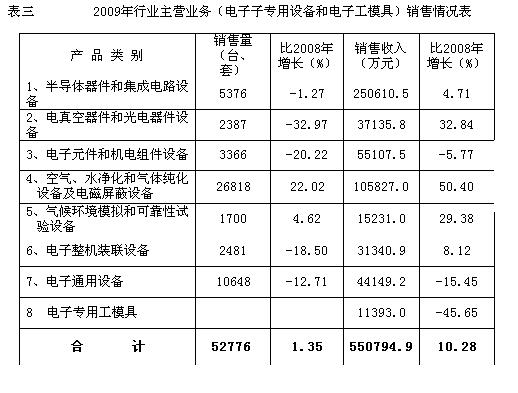(一)2009年電子專用設備行業經濟運行基本情況
